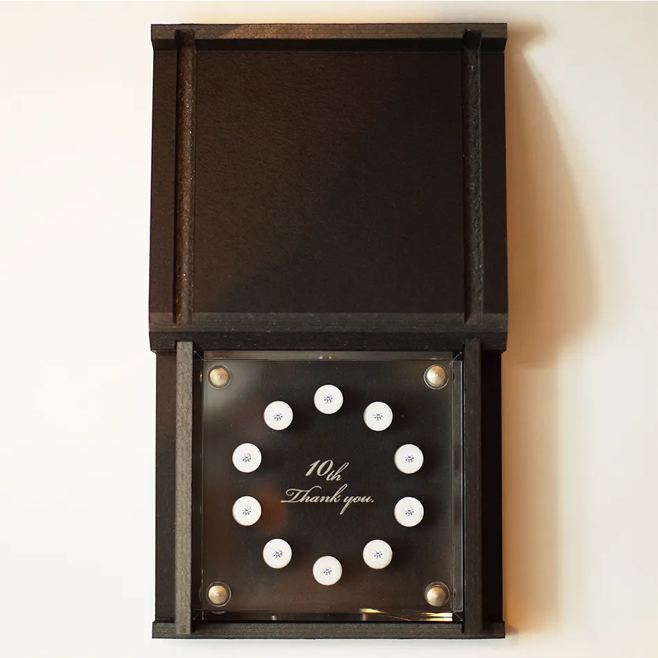「10th thank you.」10周年のお祝いに感謝を込めたありがとうの意味を込めた刻印が刻まれています。